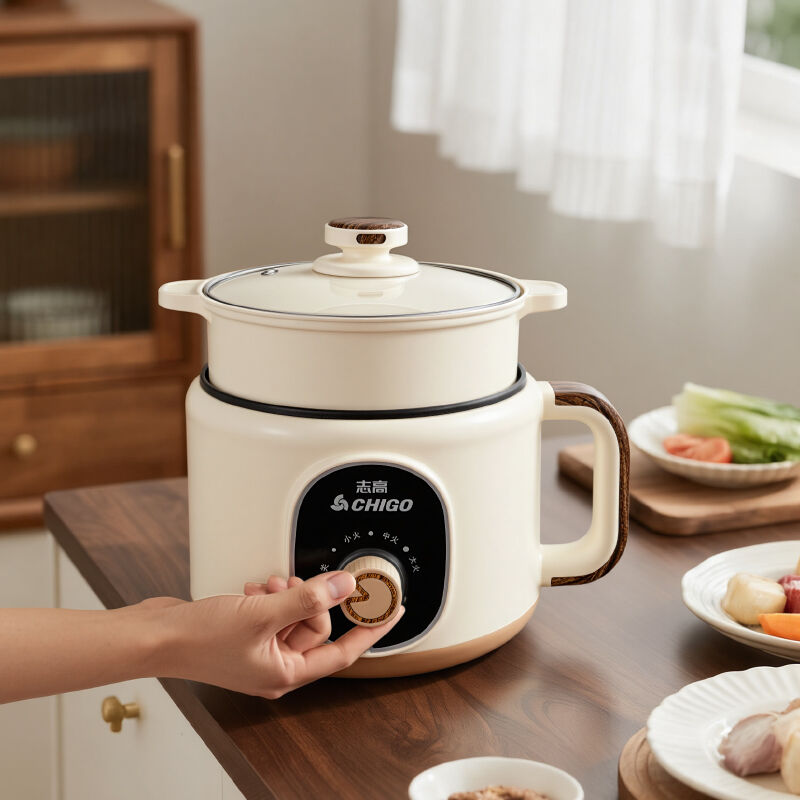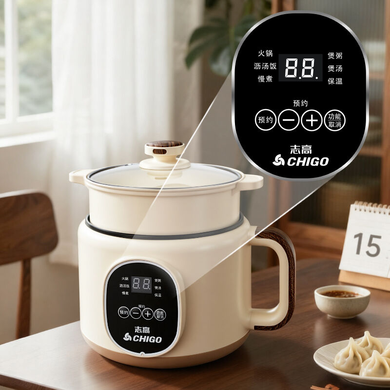 اختر بين نسخة المقبض الميكانيكي (تشغيل بسيط) ونسخة اللمس الذكية (لوحة قابلة للتخصيص بعدة لغات). وتشمل النسخة الذكية ستة برامج مُعدة مسبقًا: الطهي في قدر واحد (الهوت بوت)، وطبخ الشوربة، وسلق الأرز، والطهي البطيء، وتحضير الحساء، والحفاظ على سخونة الطعام — كل احتياجات الطهي في قدر واحدة.