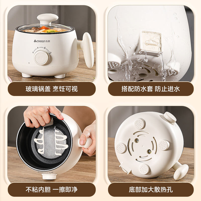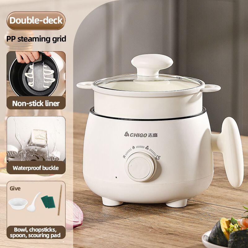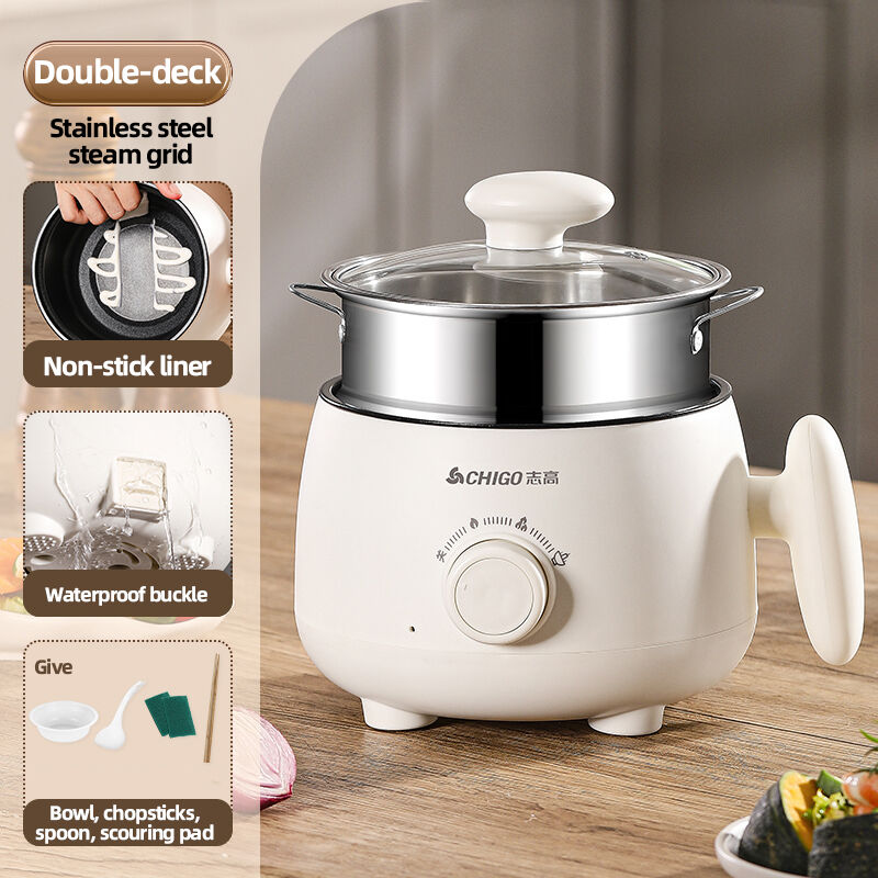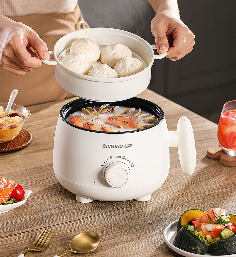 Available in single pot, dual-layer with plastic rack, or dual-layer with steel rack configurations. It handles frying, stir-frying, boiling, and hot pot, and also allows simultaneous steaming and boiling—ideal for limited spaces like dorms or small kitchens.