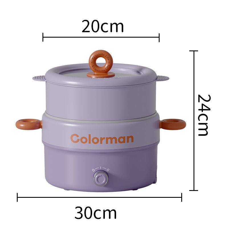 Choose between single-pot cooking or a dual-layer setup (with plastic steaming rack) for frying, stir-frying, hot pot, and steaming—all in one pot. Features a waterproof plug for the power port to prevent water ingress during cleaning, ensuring added safety and peace of mind in daily use.