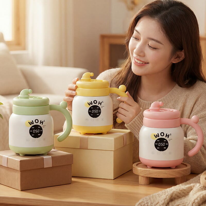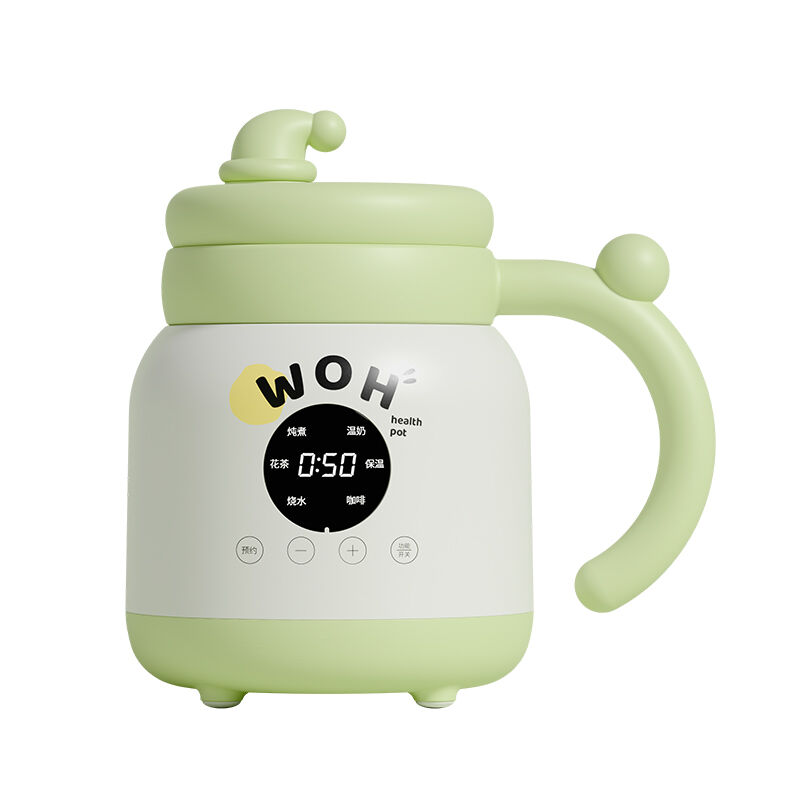 The intelligent model integrates six functions: stew, warm milk, keep warm, coffee, boil water, and flower tea. Each beverage has its own dedicated program for optimal results. The panel supports multi-language customization, making it suitable for global markets.